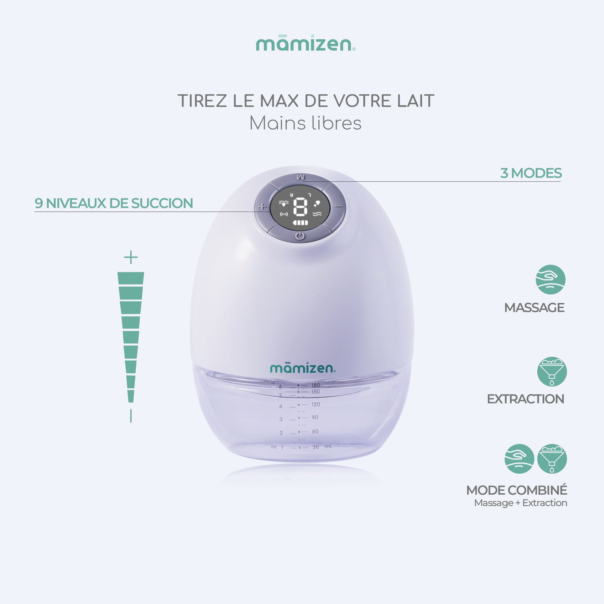 Le tire-lait Mamizen est un modèle portable et discret qui se glisse directement dans le soutien-gorge. Sans fil, silencieux et pratique, il permet aux mamans de tirer leur lait en toute liberté, à la maison, au travail ou en déplacement.