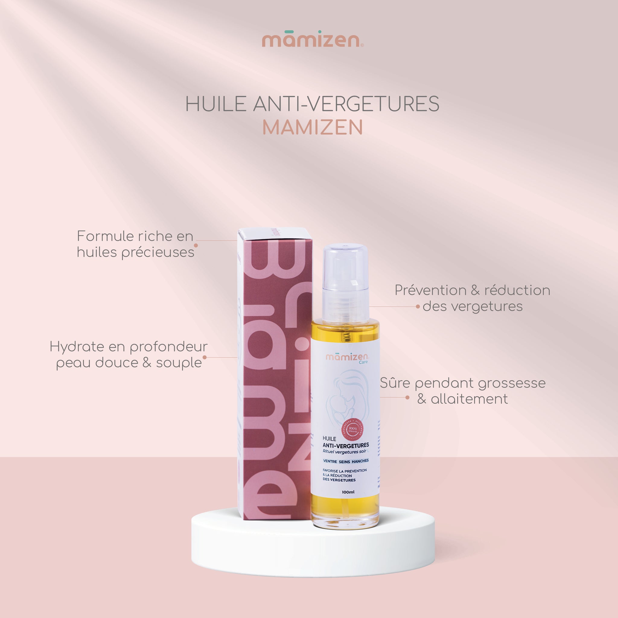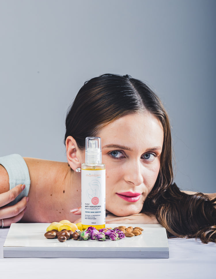 Prévenez et atténuez naturellement les vergetures avec l’Huile Anti-Vergetures – Mamizen Care.
